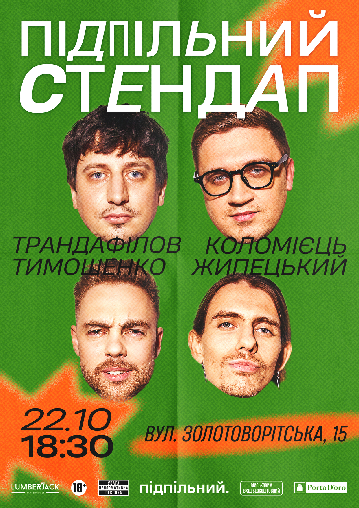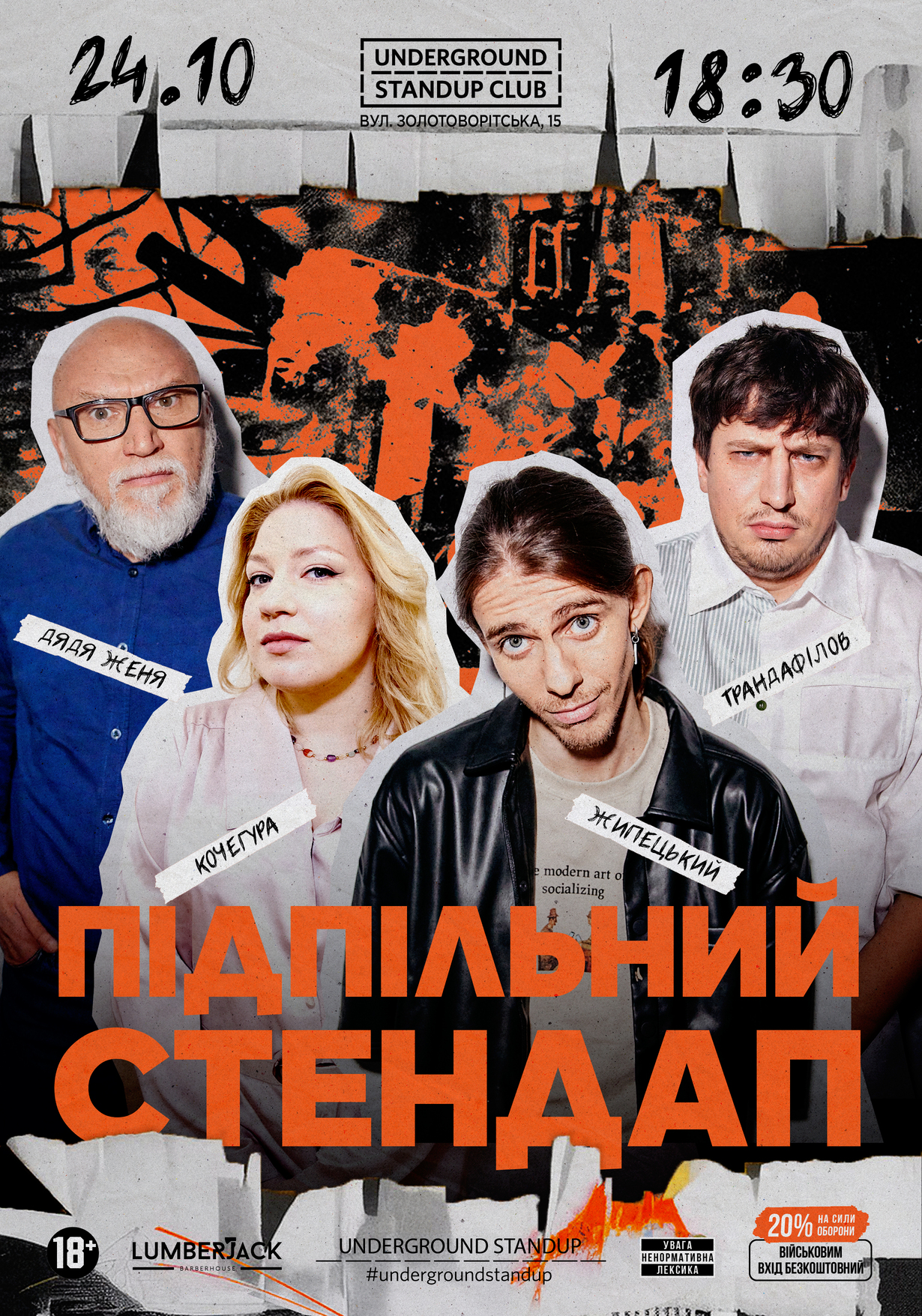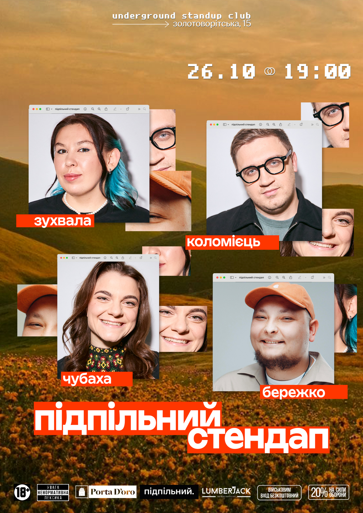 Підпільний Стендап має свій підхід до комедії. Особливі локації та формати, ексклюзивний матеріал від українських стендап коміків, що «не покажуть по ТБ». З кожного концерту передаємо від 20% на потреби ЗСУ та влаштовуємо благодійні заходи.