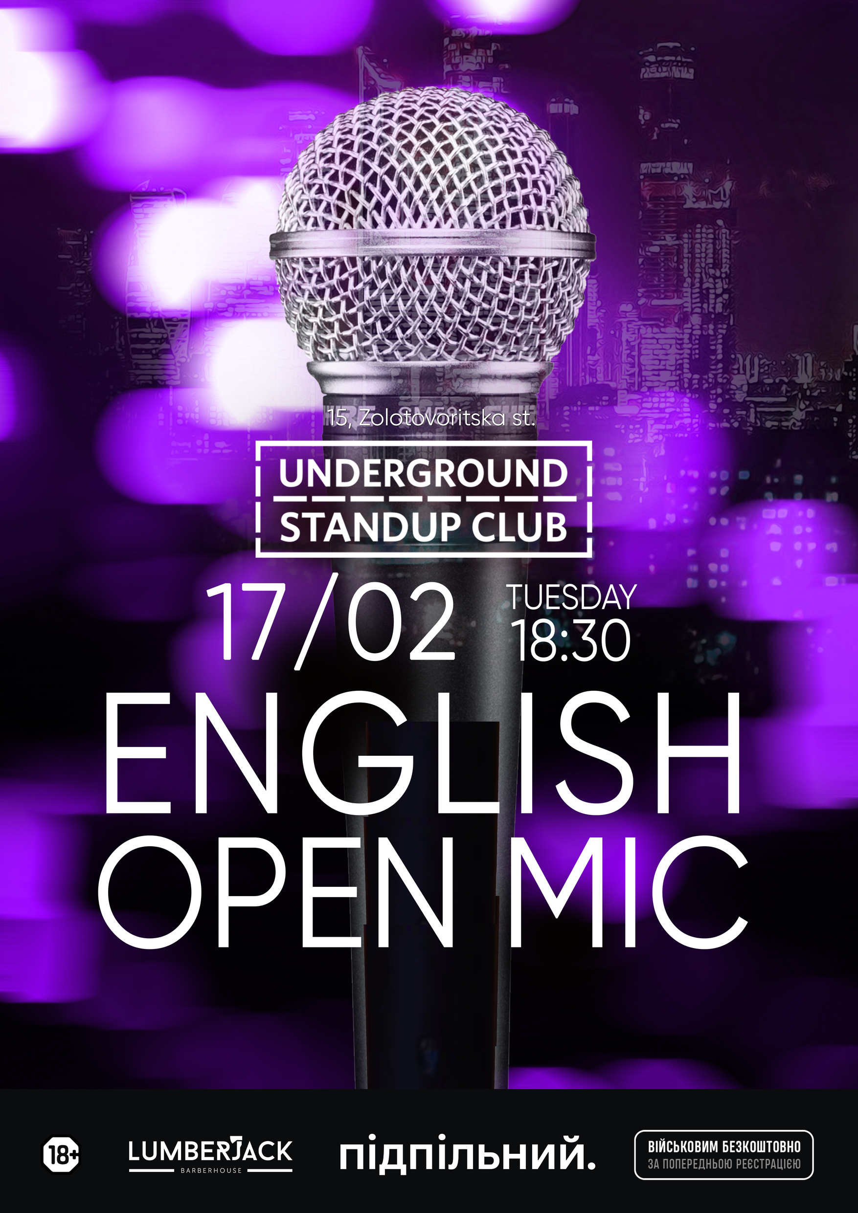 Щопонеділка — Відкритий мікрофон. Реєструйся щосуботи о 12:00 на сторінці Underground Stand Up Club. Лайнап формуємо з 15 сміливців. Тут кожен може показати свої жарти і перевірити, чи реально вони смішні.
